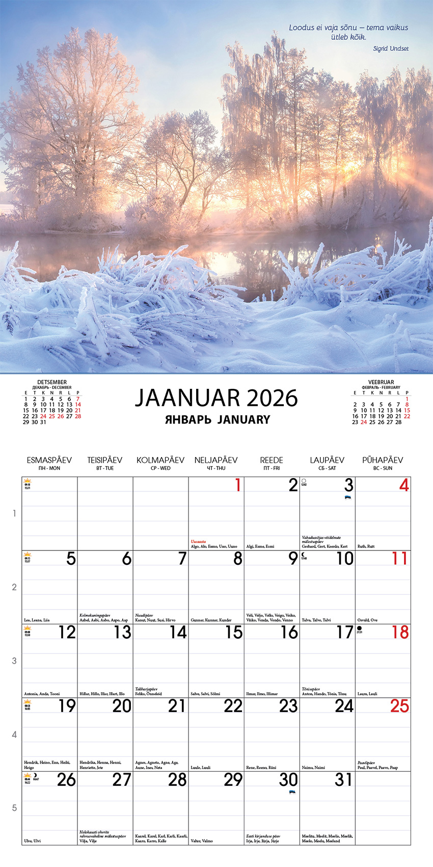 Raamatu sisu:Seinakalender 2026. Looduse rahu