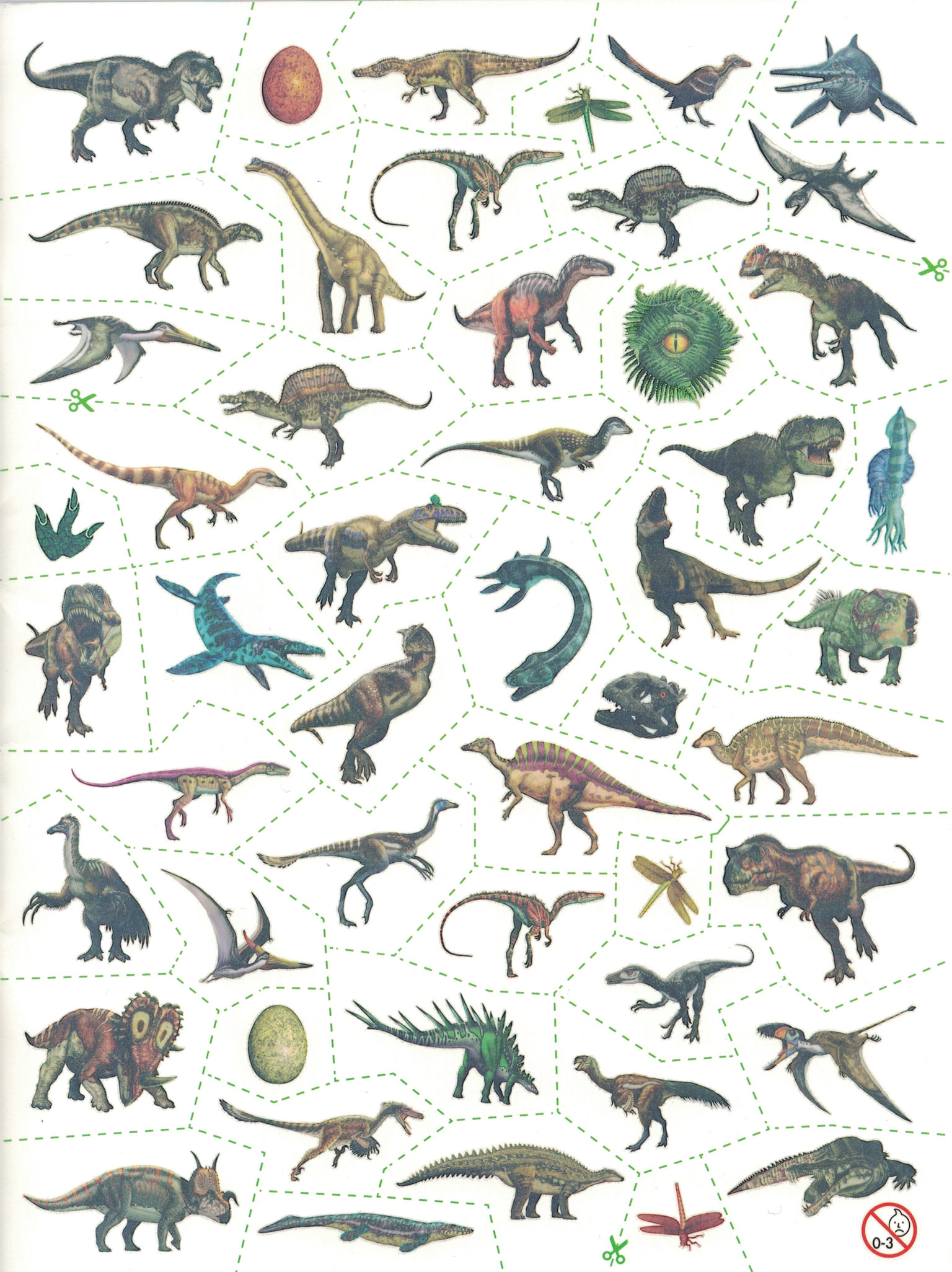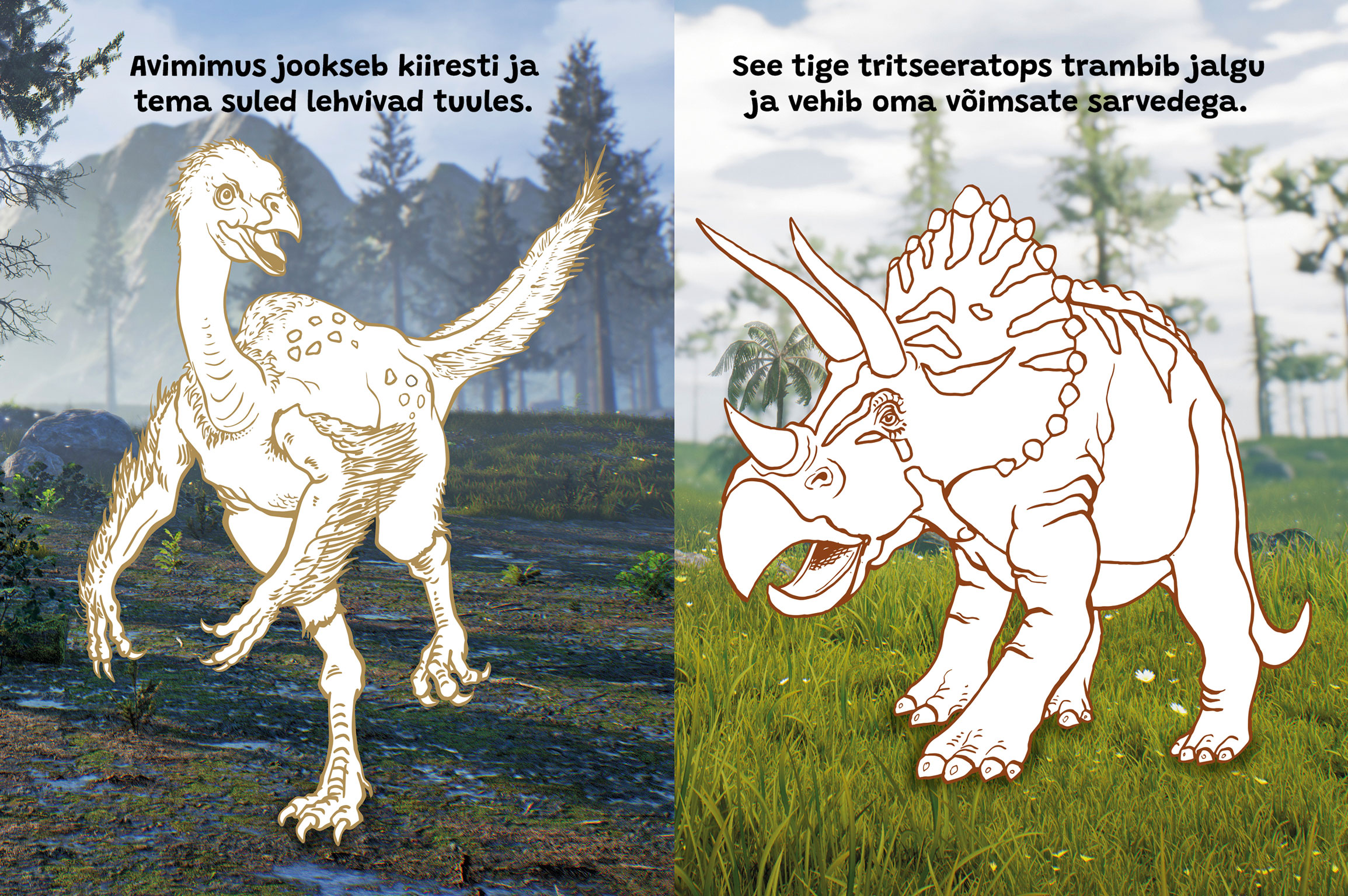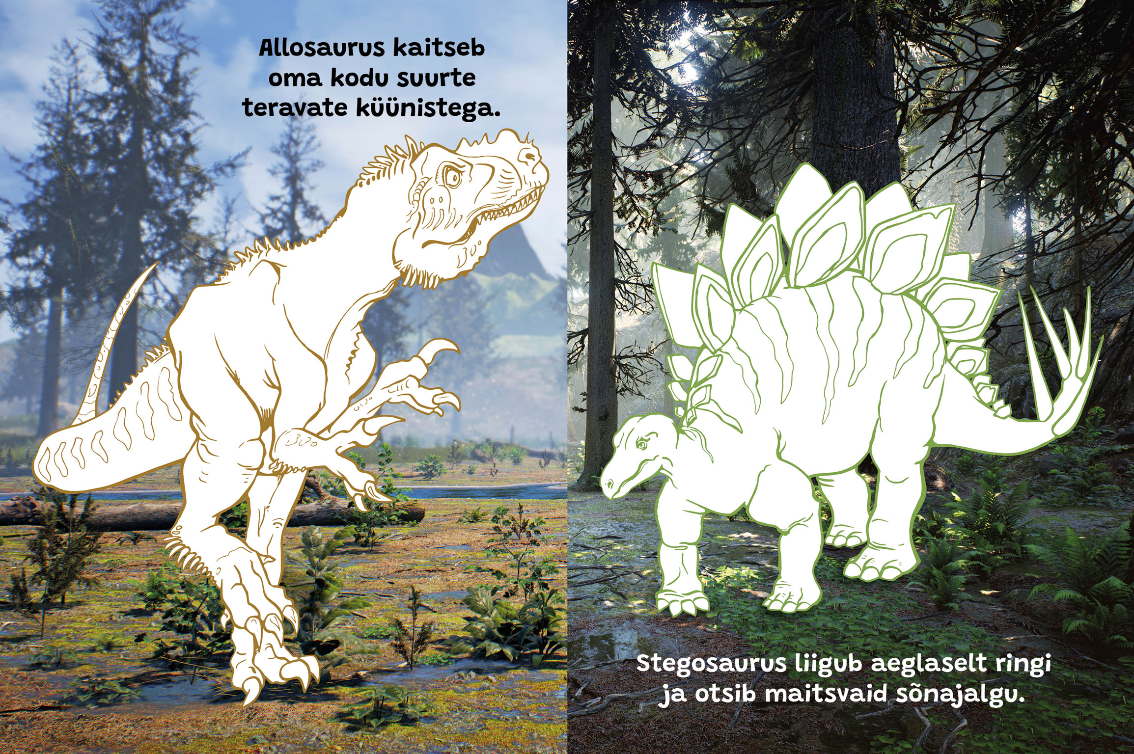 Raamatu sisu:Värviraamat. 100 ajutist tätoveeringut: Dinosaurused