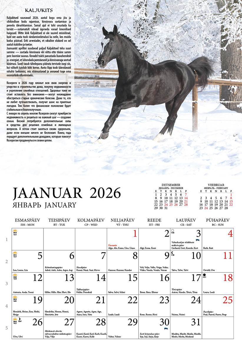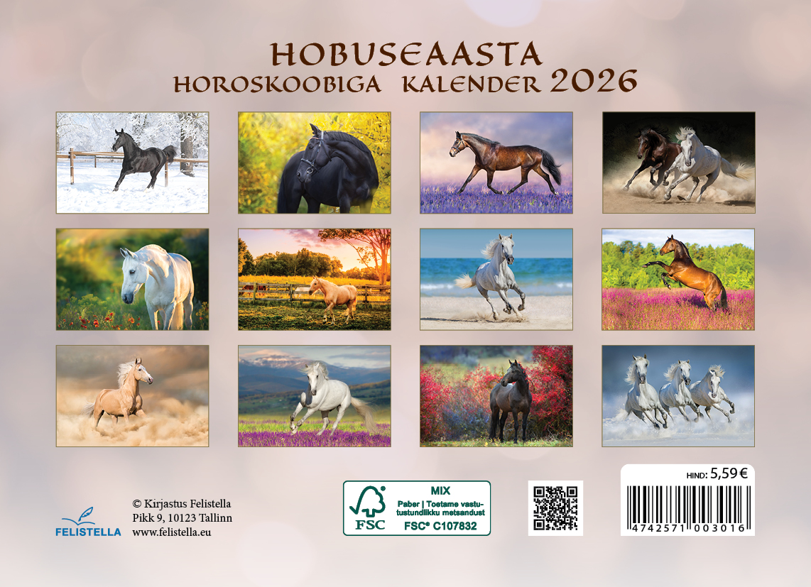 Raamatu sisu:Seinakalender 2026. Hobuseaasta horoskoobiga kalender